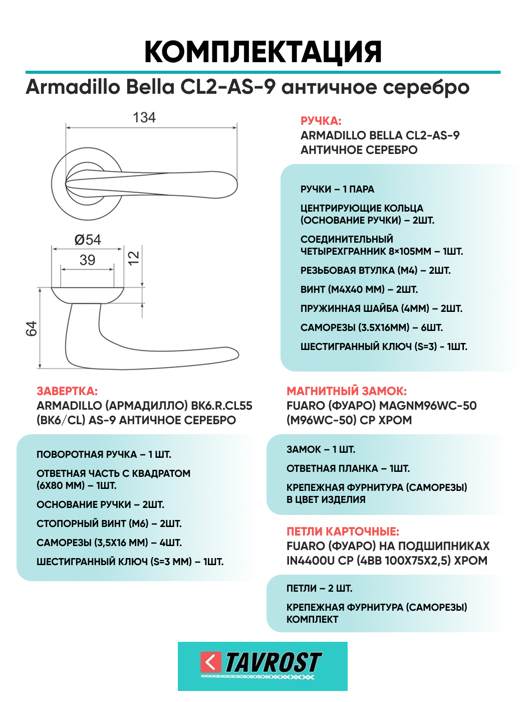 Комплект: Ручки Armadillo Pava LD42-1AB/GP-7+Завертка+Магнитный замок и Петли Fuaro/бронза/золото