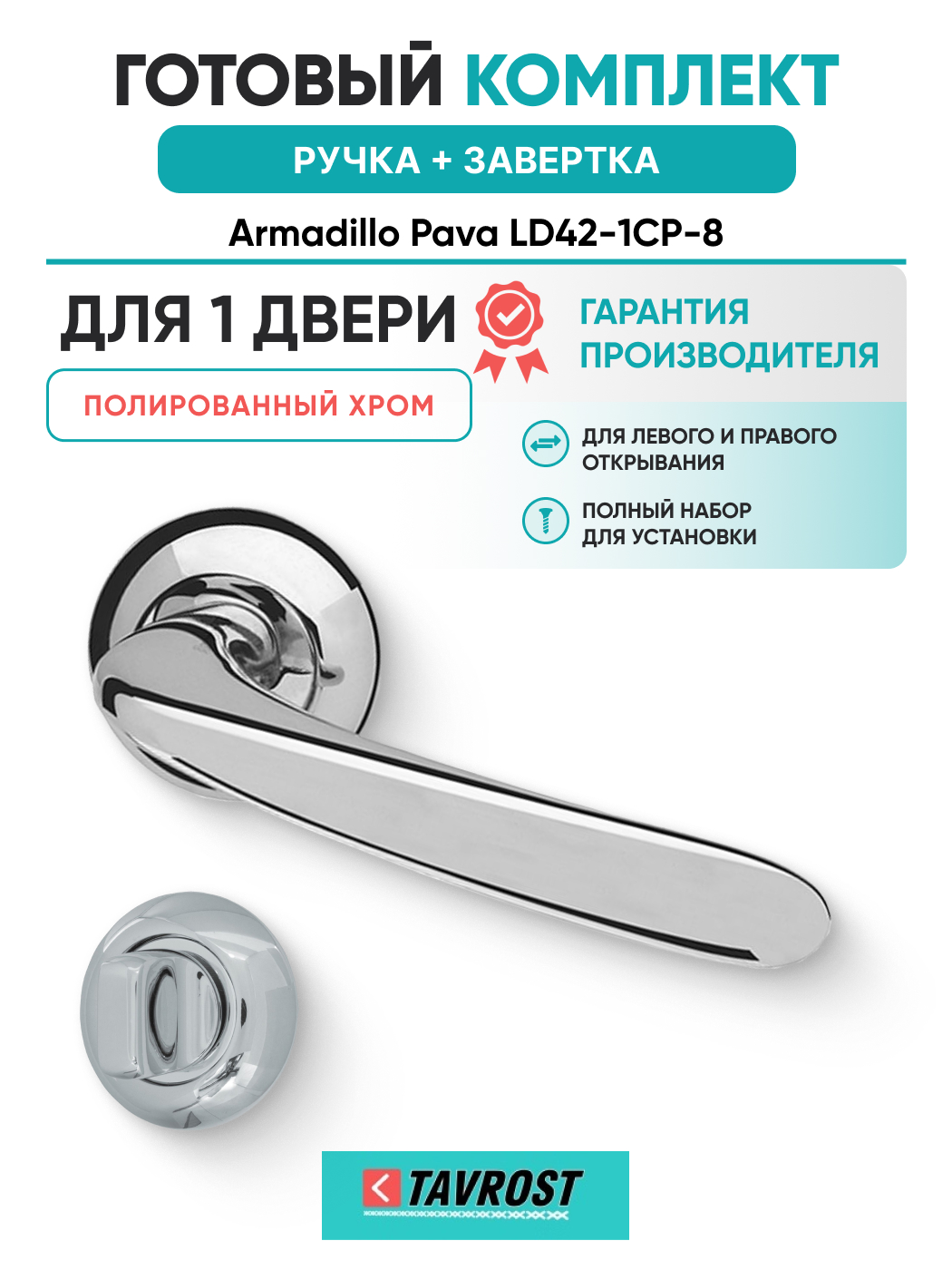 Комплект: Ручки Armadillo Pava LD42-1CP-8 + Завертка BK6.R.LD54 CP-8 хром