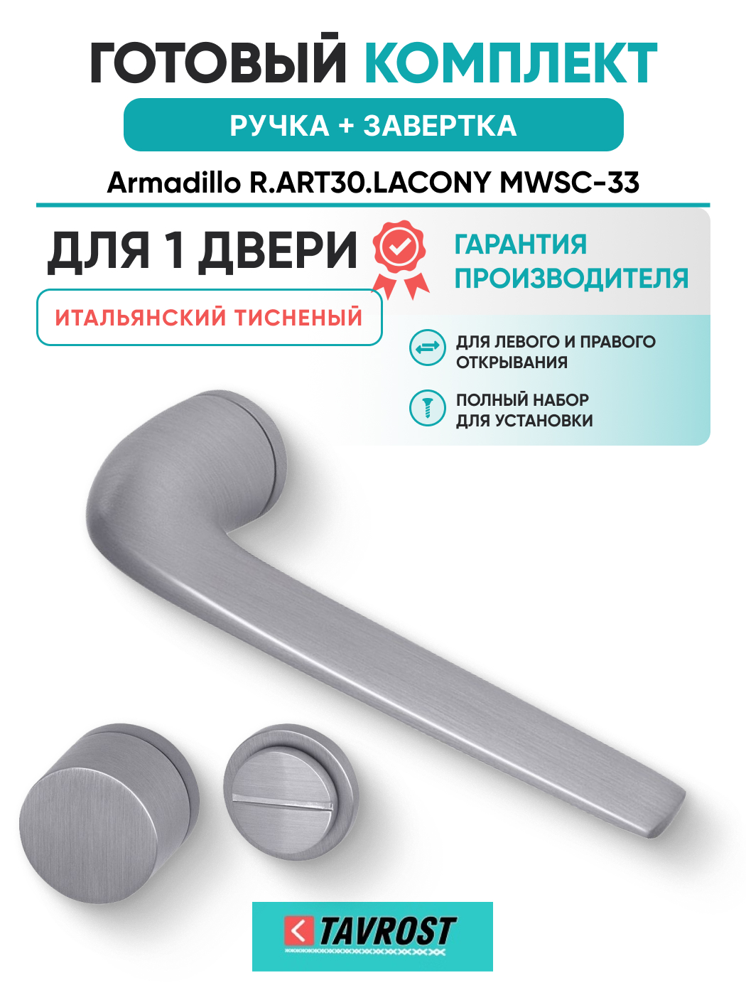 Ручка дверная межкомнатная Armadillo R.ART30.LACONY MWSC-33 итальянский тисненый:В современном мире минимализм стал полноценной жизненной философией. Он прослеживается искусстве, музыке, стиле жизни, дизайне и интерьере.Современное искусство в стиле минимализм отождествляется строгостью линий, простыми, базовыми формами, идеальными пропорциями, а также отсутствием излишеств. Это то искусство, которое направленно на глубину мыслей, спокойствие, восполнения себя и своей энергии... Коллекция передает полноценную философию минимализма, отражая все его грани.Объекты коллекции The ART - это искусство лаконичного и изысканного дизайна, которому нужно больше тишины и пространства, для отражения всей глубины задуманного. Коллекция, которую можно прочувствовать лишь сделав несколько шагов назад. Каждый предмет олицетворяет основные идеи стиля минимализм: баланс, лаконичность, симметрия, четкость деталей.