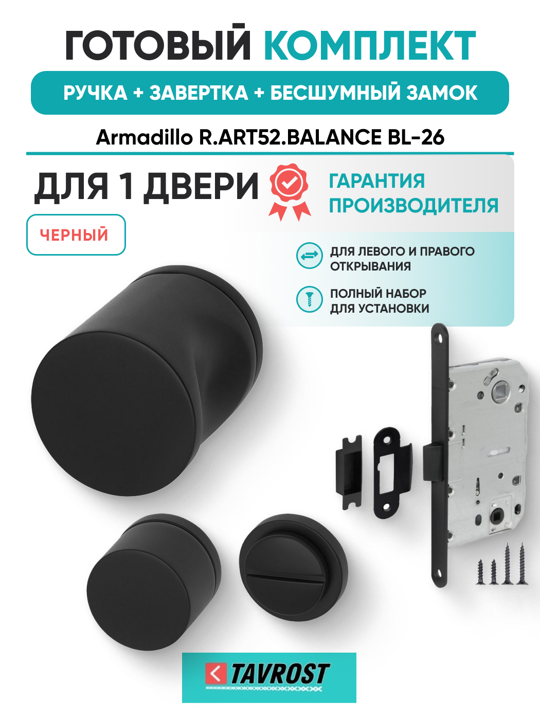 Комплект: Ручки Armadillo R.ART52.BALANCE BL-26+Завертка+Бесшумный замок Fuaro/черный