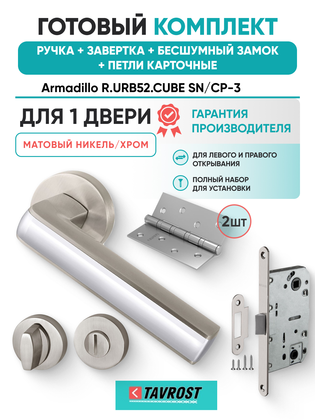 Комплект: Ручки Armadillo R.URB52.CUBE SN/CP-3+Завертка+Бесшумн замок и Петли Fuaro/мат никель/хром