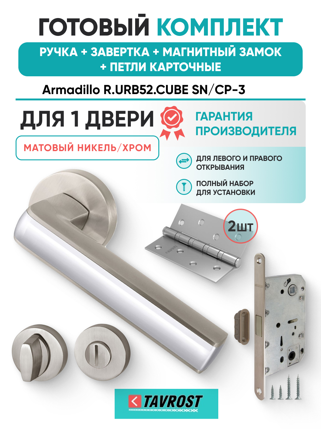 Комплект: Ручки Armadillo R.URB52.CUBE SN/CP-3+Завертка+Магн замок и Петли Fuaro/матовый никель/хром