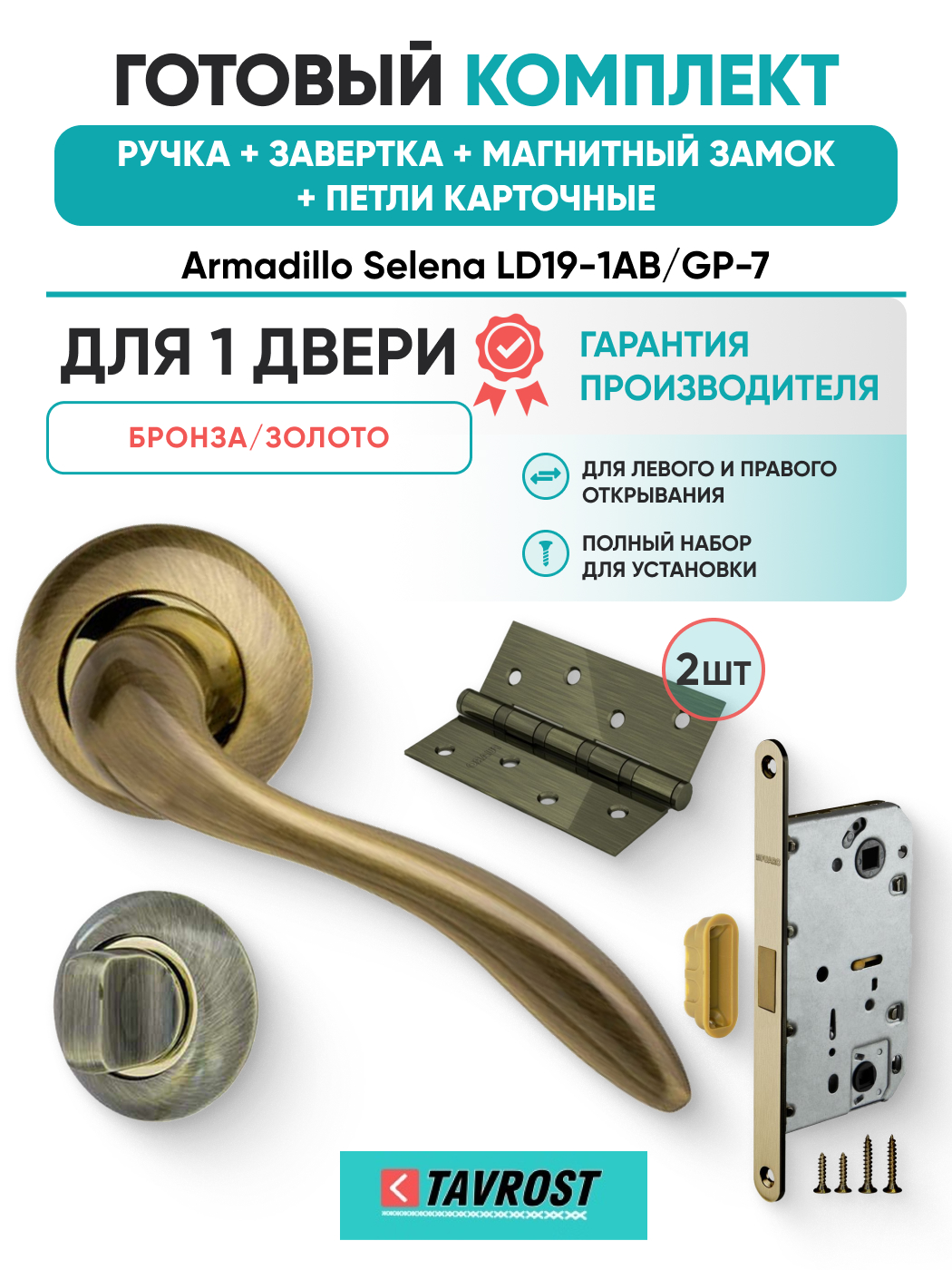 Комплект: Ручки Armadillo Selena LD19-1AB/GP-7+Завертка+Магнитный замок и Петли Fuaro/бронза/золото