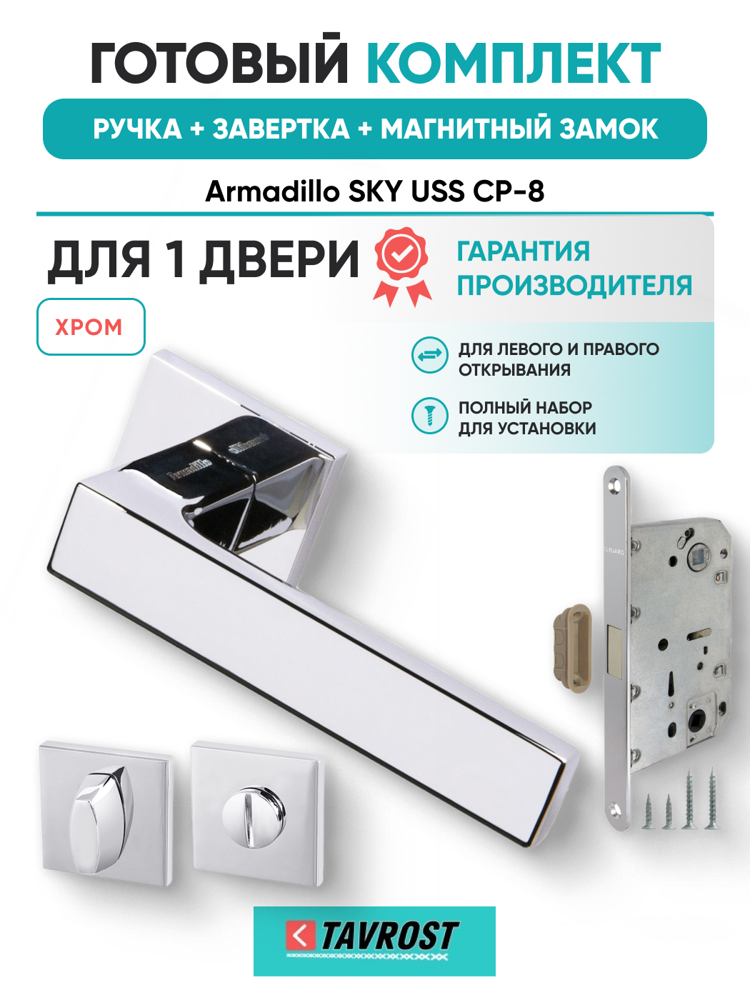 Комплект: Ручки Armadillo SKY USS CP-8+Завертка+Магнитный замок Fuaro/хром