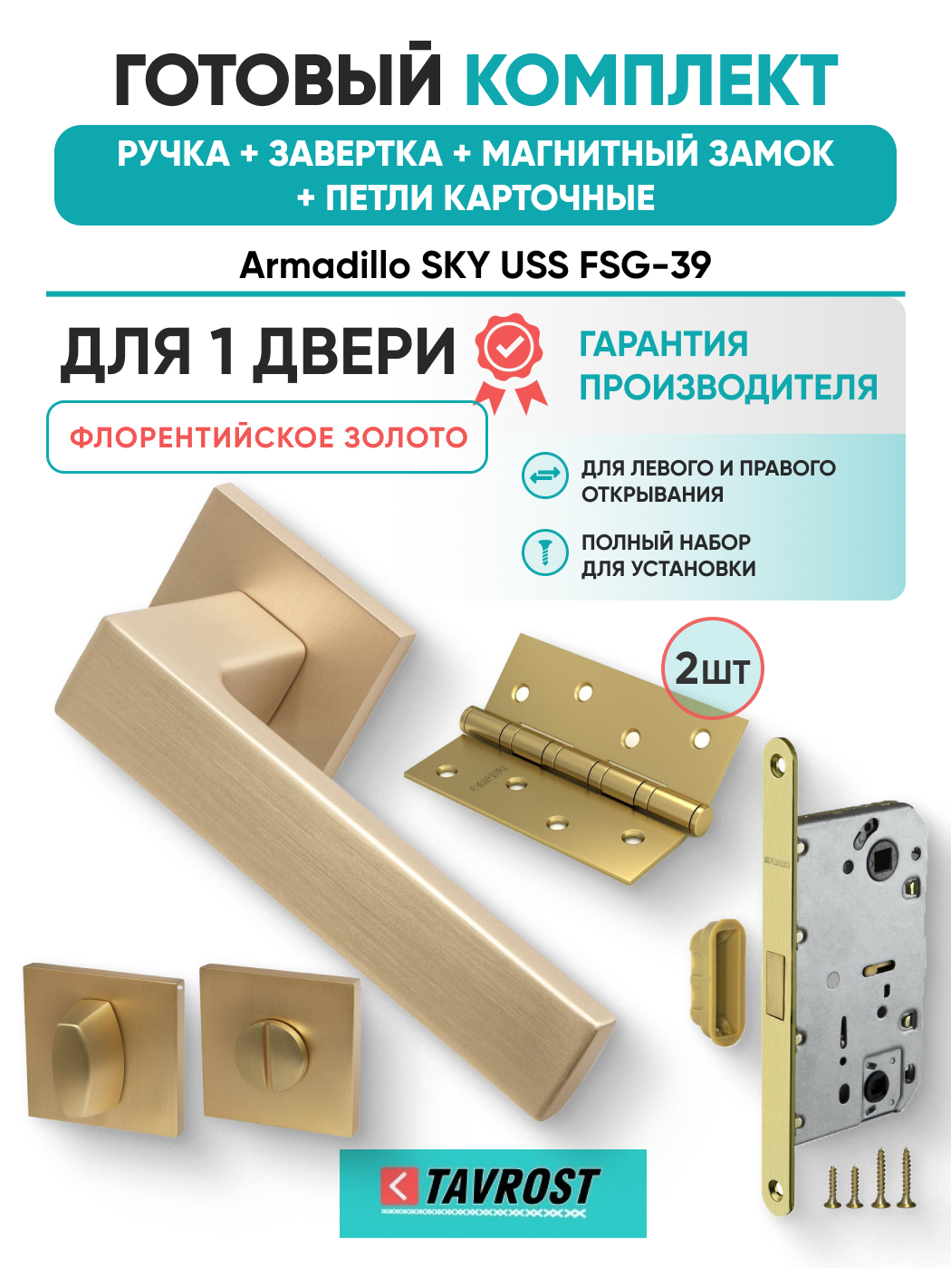 Комплект: Ручки Armadillo SKY USS FSG-39+Завертка+Магнитный замок и Петли Fuaro/флорентийское золото
