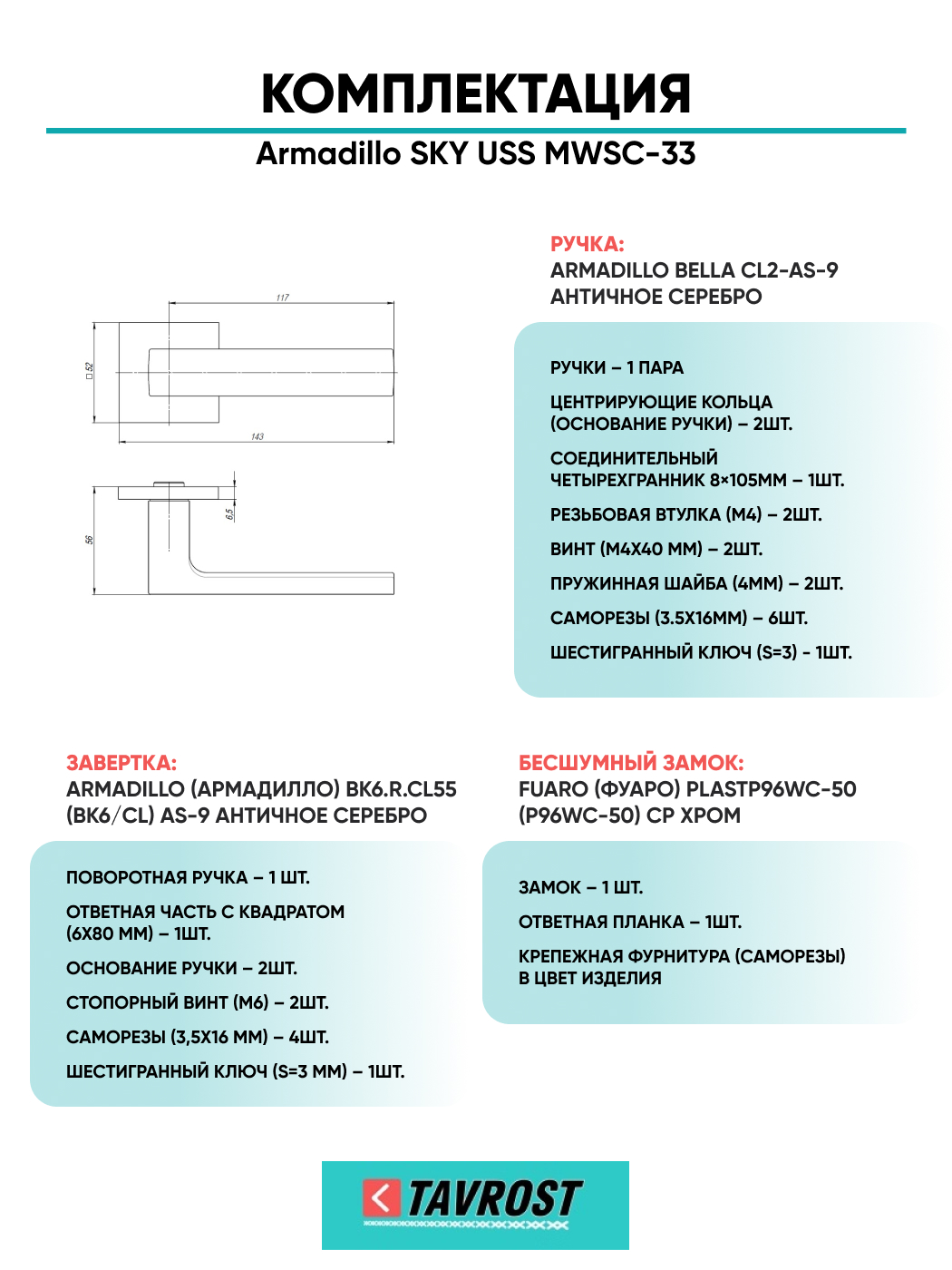 Комплект: Ручки Armadillo SKY USS MWSC-33+Завертка+Бесшумный замок Fuaro/итальянский тисненый