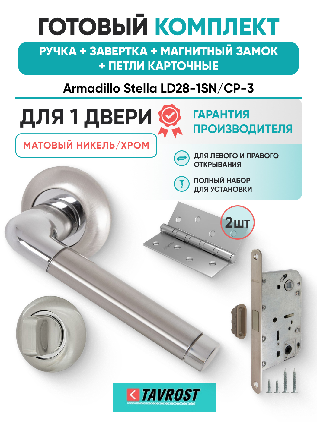 Комплект: Ручки Armadillo Stella LD28-1SN/CP-3+Завертка+Магн замок и Петли Fuaro/матов никель/хром