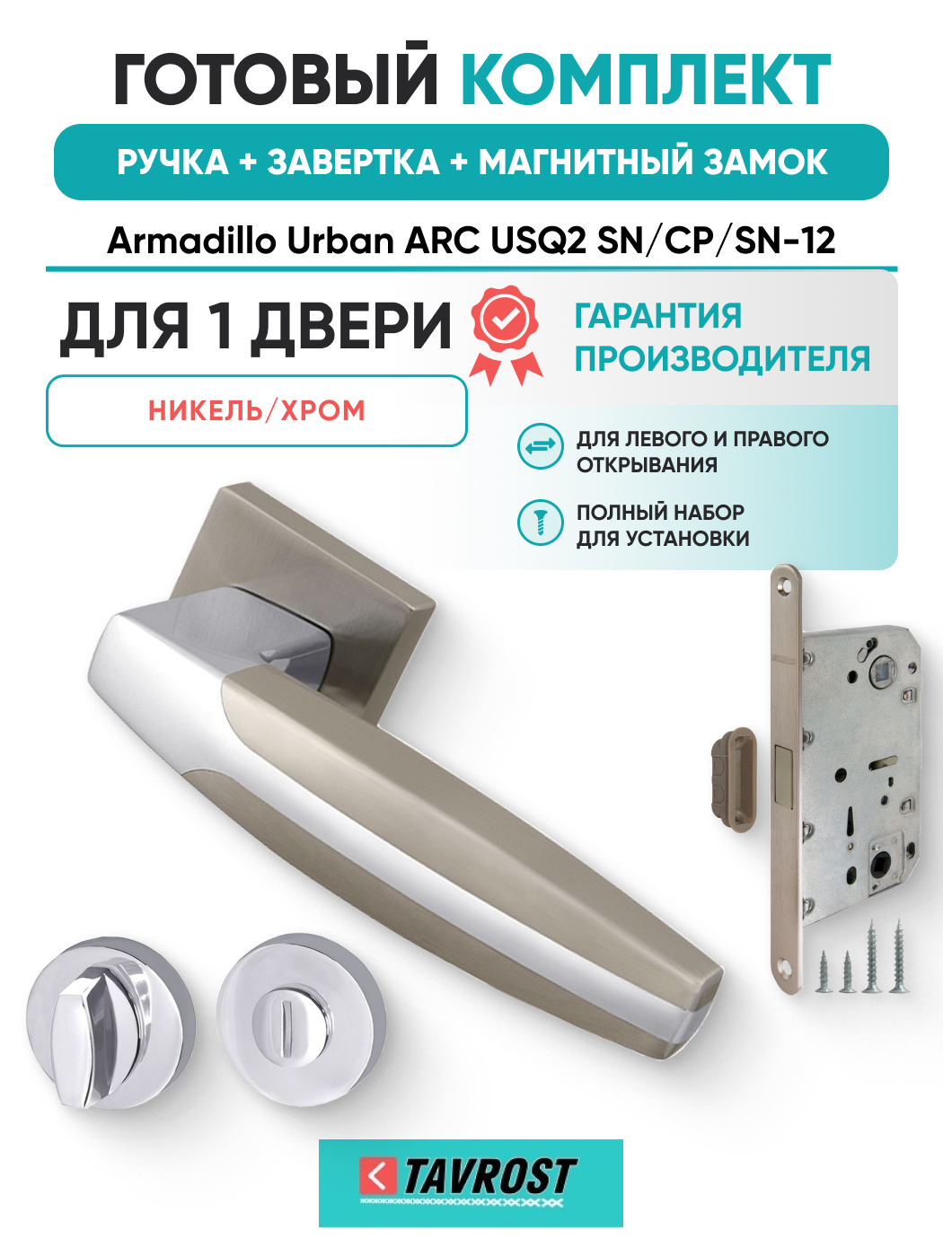 Комплект: Ручки Armadillo Urban ARC USQ2 SN/CP/SN-12+Завертка+Магнит замок Fuaro/матовый никель/хром