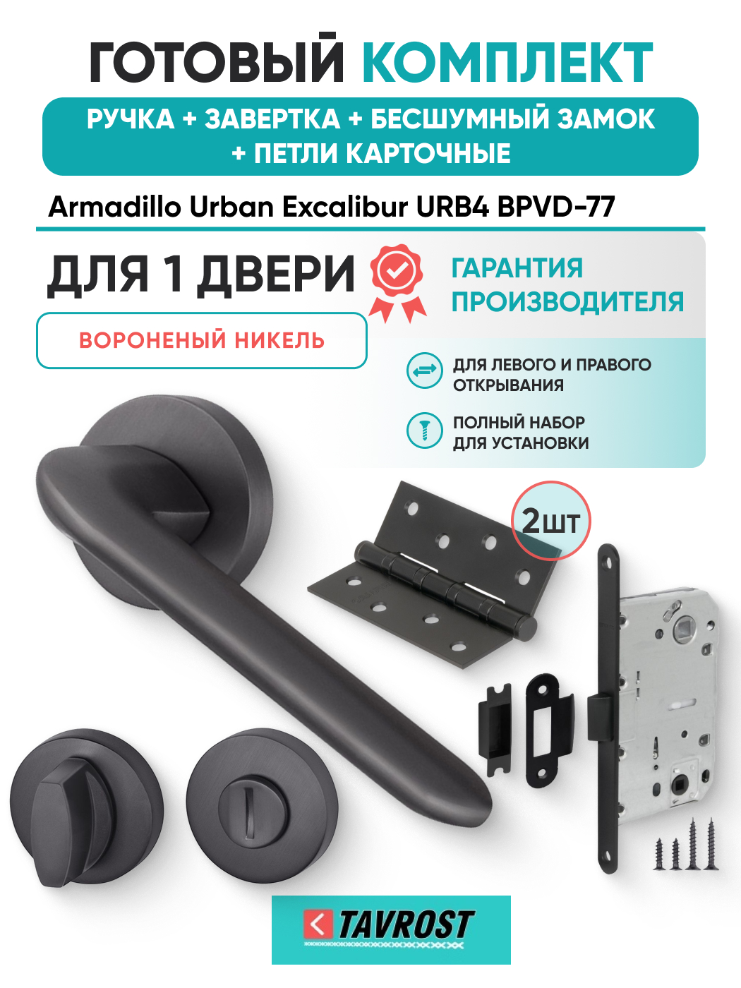 Комплект: Ручки Armadillo Urban Excalibur URB4 BPVD-77+Завертка+Бесш замок и Петли Fuaro/ворон никель