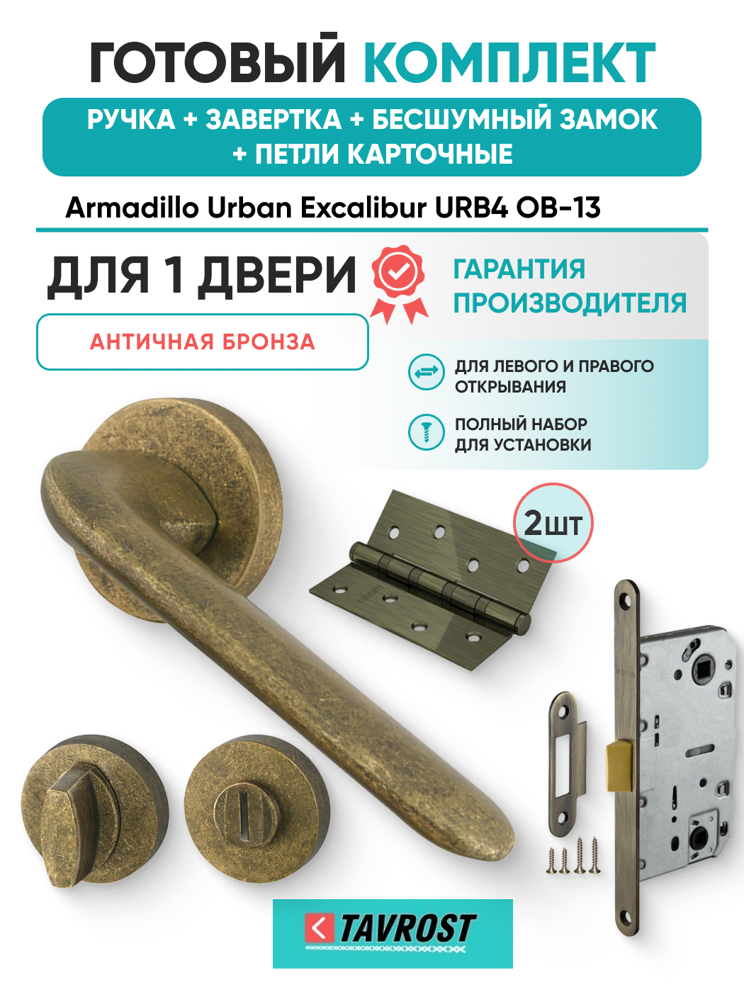 Комплект: Ручки Armadillo Urban Excalibur URB4 OB-13+Завертка+Бесшумн замок и Петли Fuaro/ант бронза