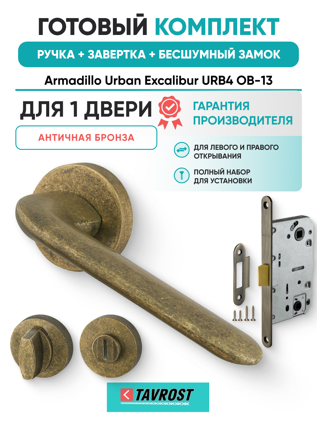 Комплект: Ручки Armadillo Urban Excalibur URB4 OB-13+Завертка+Бесшумный замок Fuaro/античная бронза
