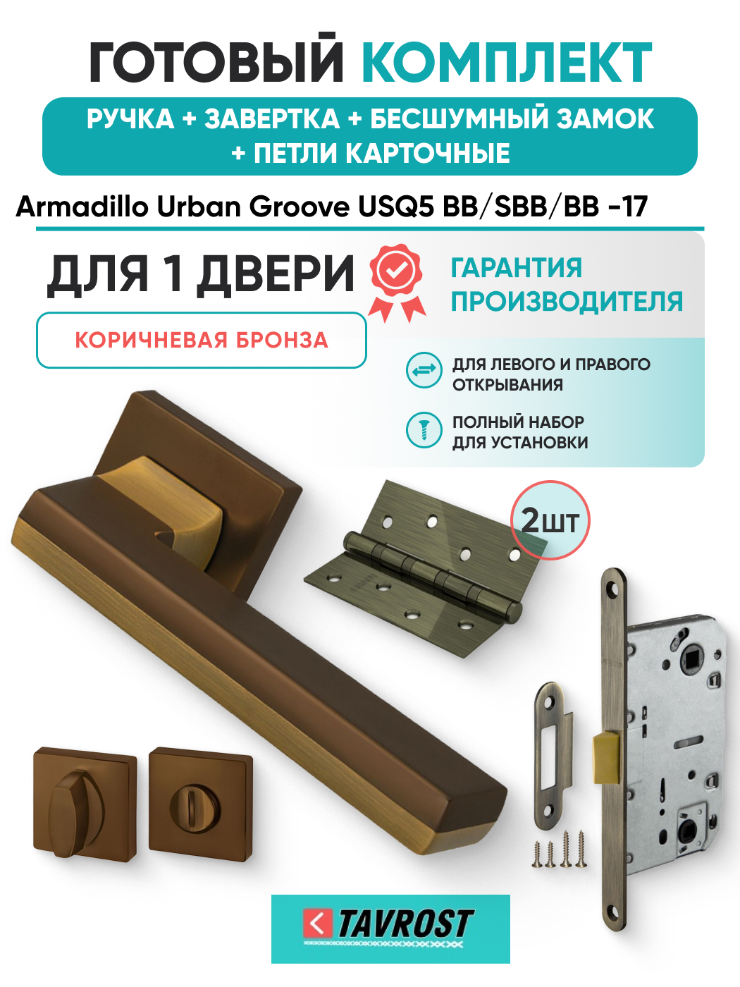 Комплект: Ручки Armadillo Urban Groove USQ5 BB/SBB/BB -17+Завертка+Бесш замок и Петли Fuaro/кор бронза