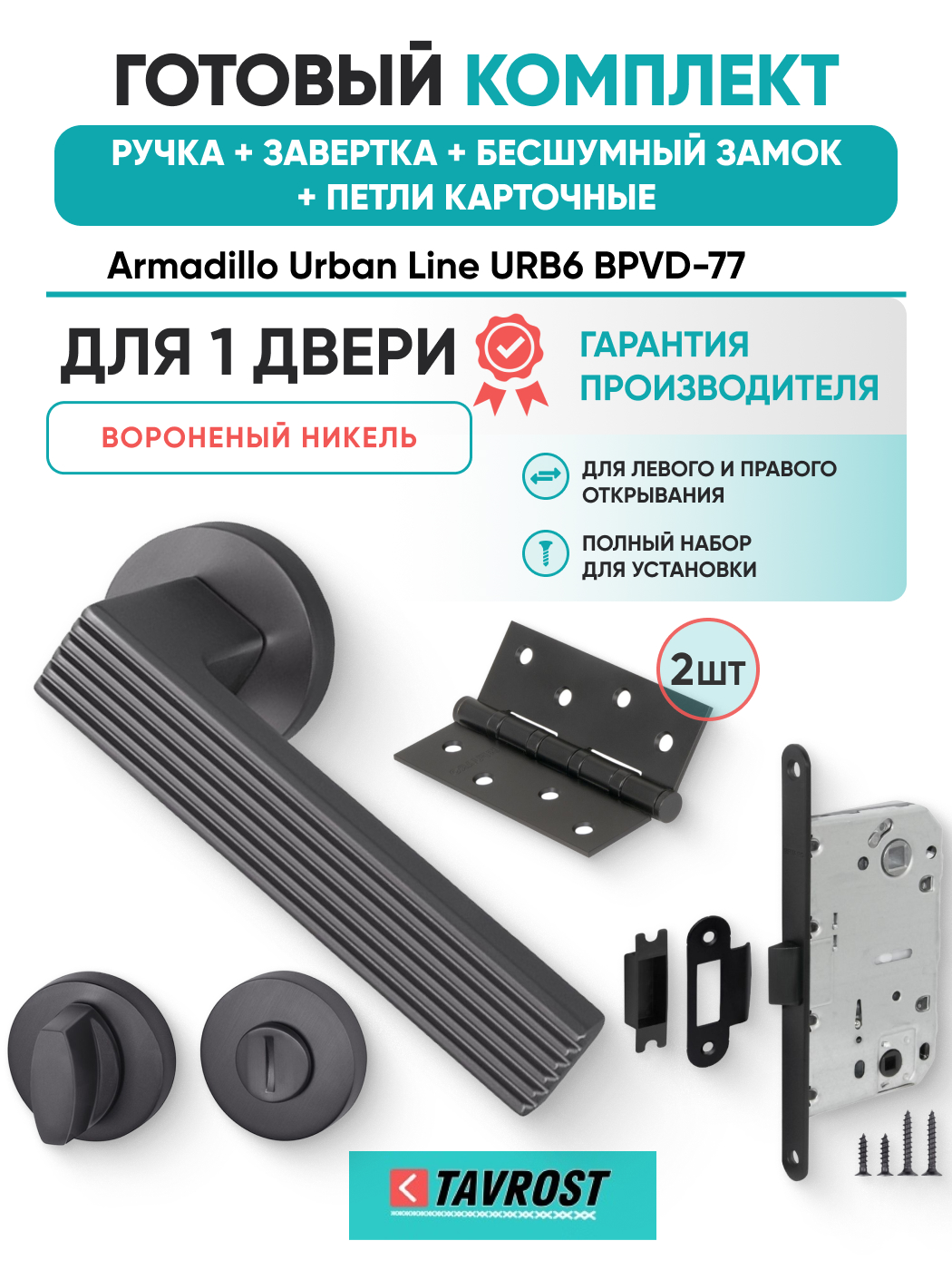 Комплект: Ручки Armadillo Urban Line URB6 BPVD-77+Завертка+Бесшумн замок и Петли Fuaro/ворон никель
