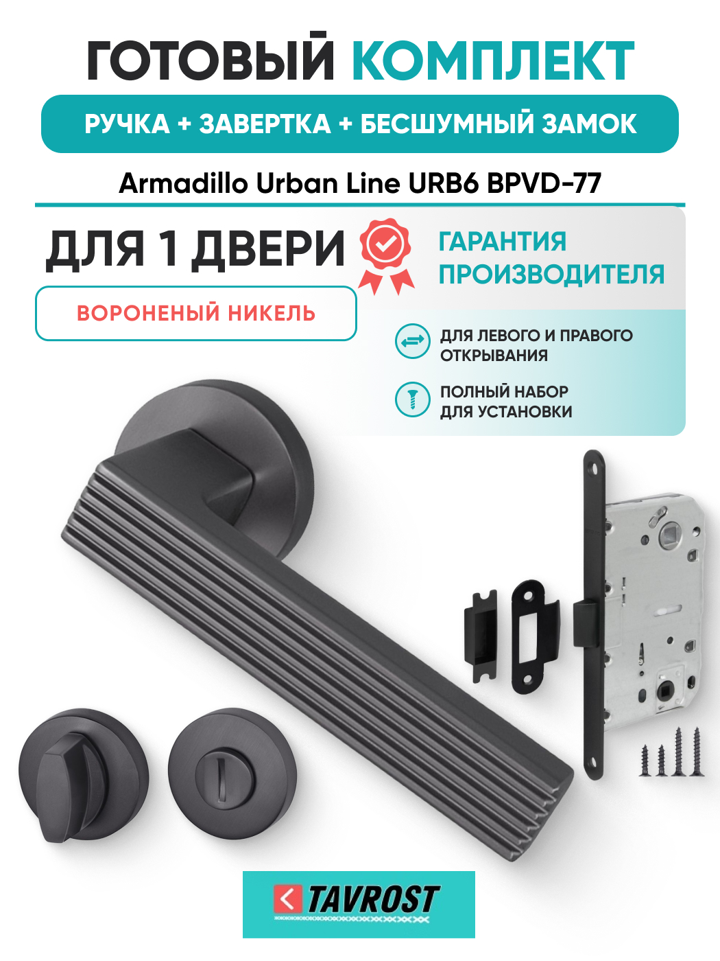 Комплект: Ручки Armadillo Urban Line URB6 BPVD-77+Завертка+Бесшумный замок Fuaro/вороненый никель