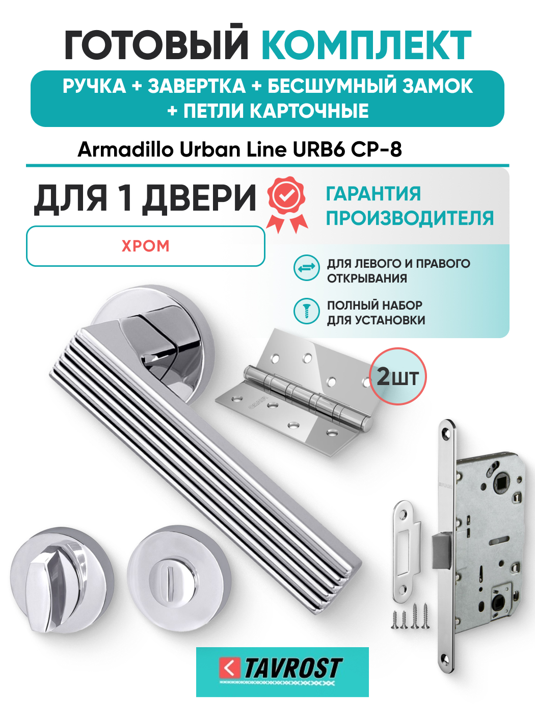 Комплект: Ручки Armadillo Urban Line URB6 CP-8+Завертка+Бесшумный замок и Петли Fuaro/хром