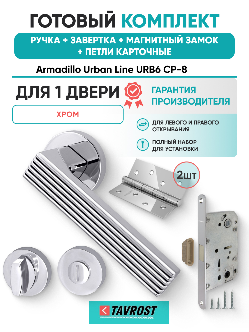 Комплект: Ручки Armadillo Urban Line URB6 CP-8+Завертка+Магнитный замок и Петли Fuaro/хром