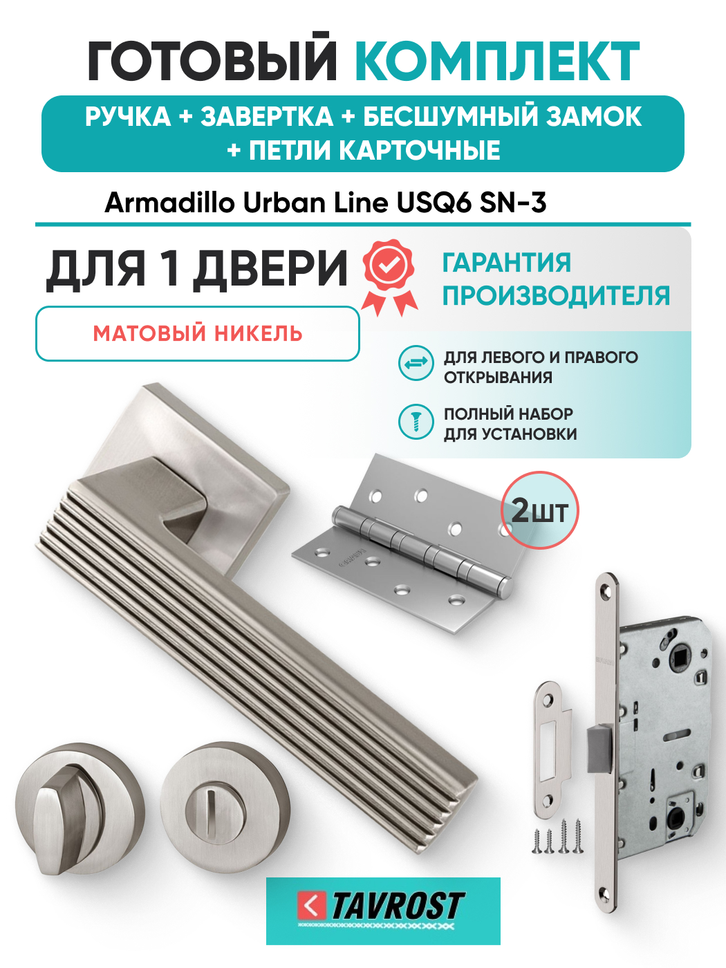 Комплект: Ручки Armadillo Urban Line USQ6 SN-3+Завертка+Бесшумный замок и Петли Fuaro/матовый никель
