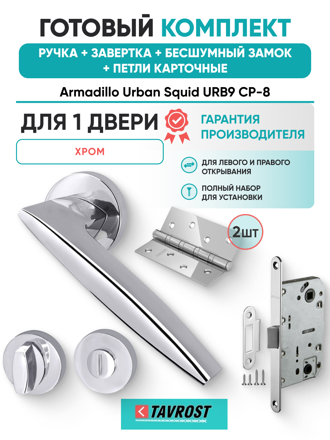 Комплект: Ручки Armadillo Urban Squid URB9 CP-8+Завертка+Бесшумный замок и Петли Fuaro/хром
