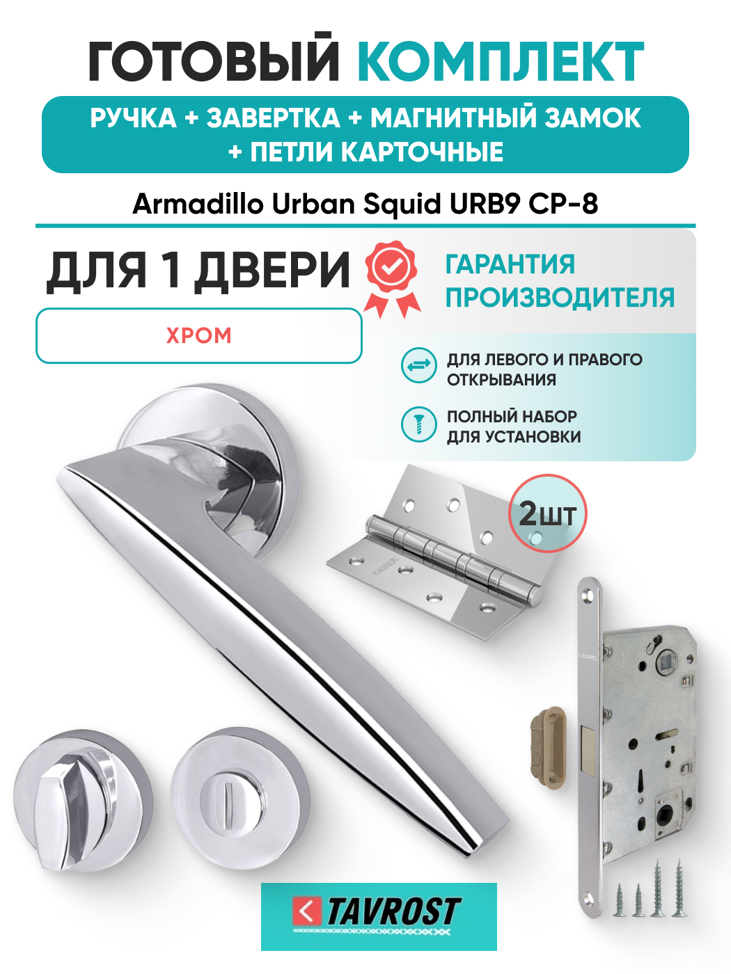 Комплект: Ручки Armadillo Urban Squid URB9 CP-8+Завертка+Магнитный замок и Петли Fuaro/хром