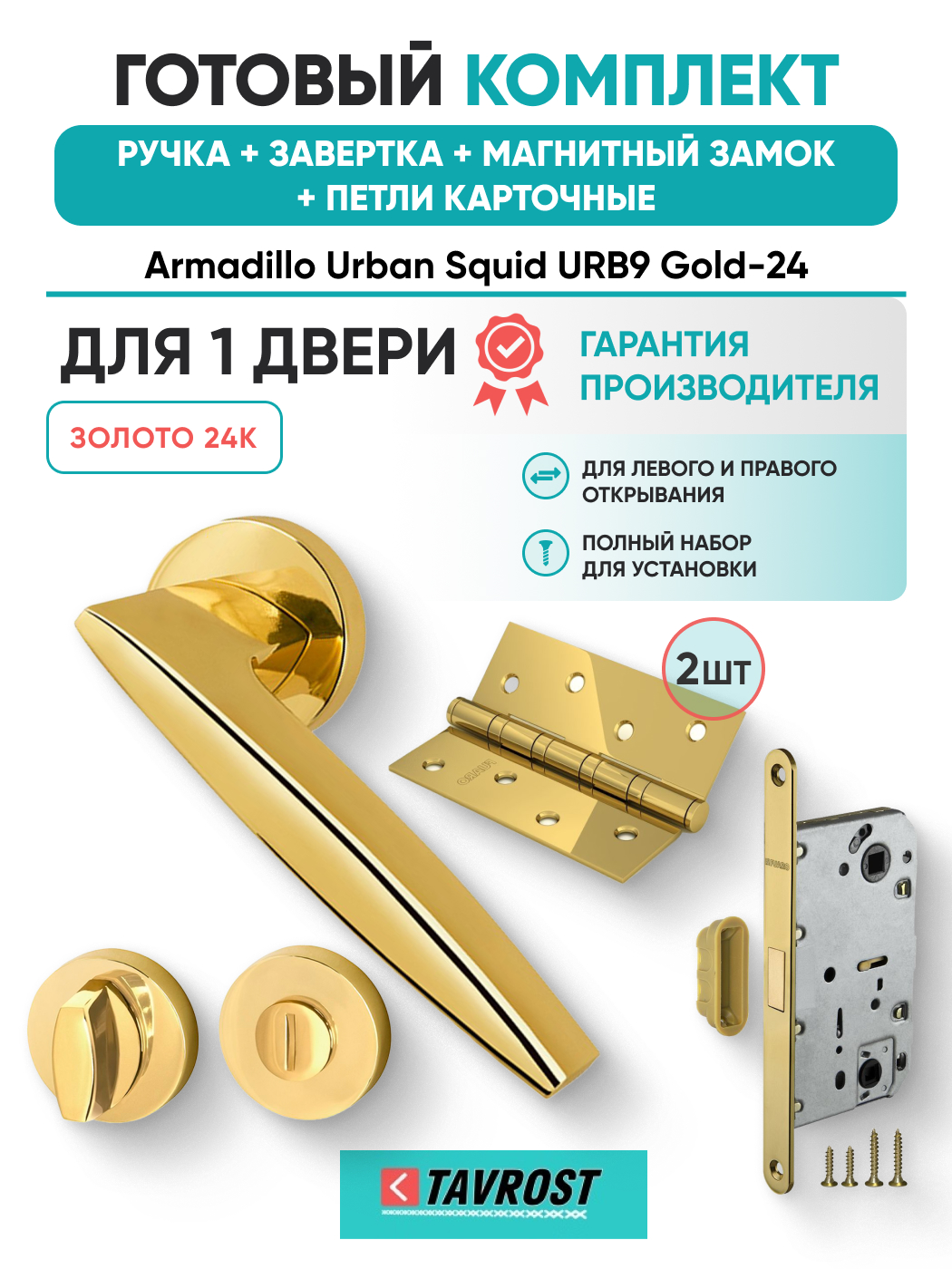 Комплект: Ручки Armadillo Urban Squid URB9 Gold-24+Завертка+Магнитный замок и Петли Fuaro/золото 24К