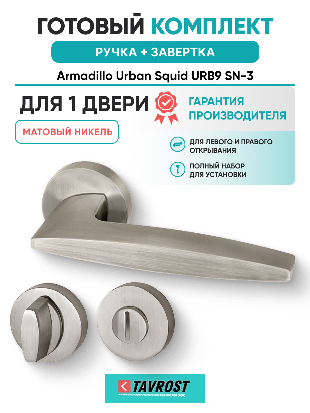 Ручка дверная межкомнатная Armadillo Urban Squid URB9 SN-3 матовый никель:При разработке Armadillo URBAN, мы черпали вдохновение в мегаполисах мира и попытались передать современные тенденции стиля хайтек. Слоган коллекции "BIG CITY LIFE" - жизнь в мегаполисе. Каждая ручка в коллекции имеет уникальное название со своей историей и легендой. В современном мегаполисе хочется почувствовать капельку природы и вы можете увидеть ее в ручке SQUID. В фас она напоминает стремительного кальмара. Крепление TURN&SET удобно для самостоятельной установки и дает возможность замены на любую другую ручку серий Classic или Urban.