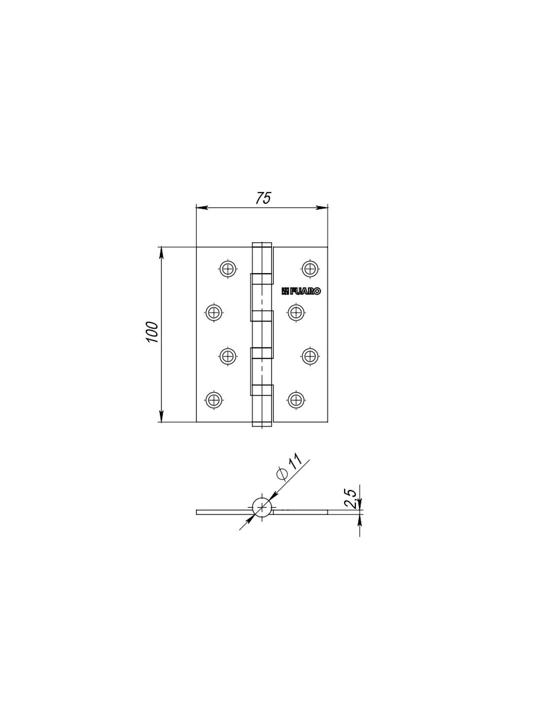 Универсальная петля Fuaro 4BB изготовлена из стали, подходит для дверей правого и левого открывания. Гальваническое покрытие соответствует высшему 4 классу устойчивости к коррозии. Края изделия прошли дополнительную полировку.Модель 4BB имеет четыре внутренних подшипника и стальной стержень, что обеспечивает 1 млн циклов открывания/закрывания. Максимальная нагрузка на 2 петли - 40 кг, на 3 петли - 60 кг. Размер - 100x75x2,5. Цвет - "бронза". Саморезы поставляются в комплекте. Гарантия - 5 лет. Упаковка - картон.
