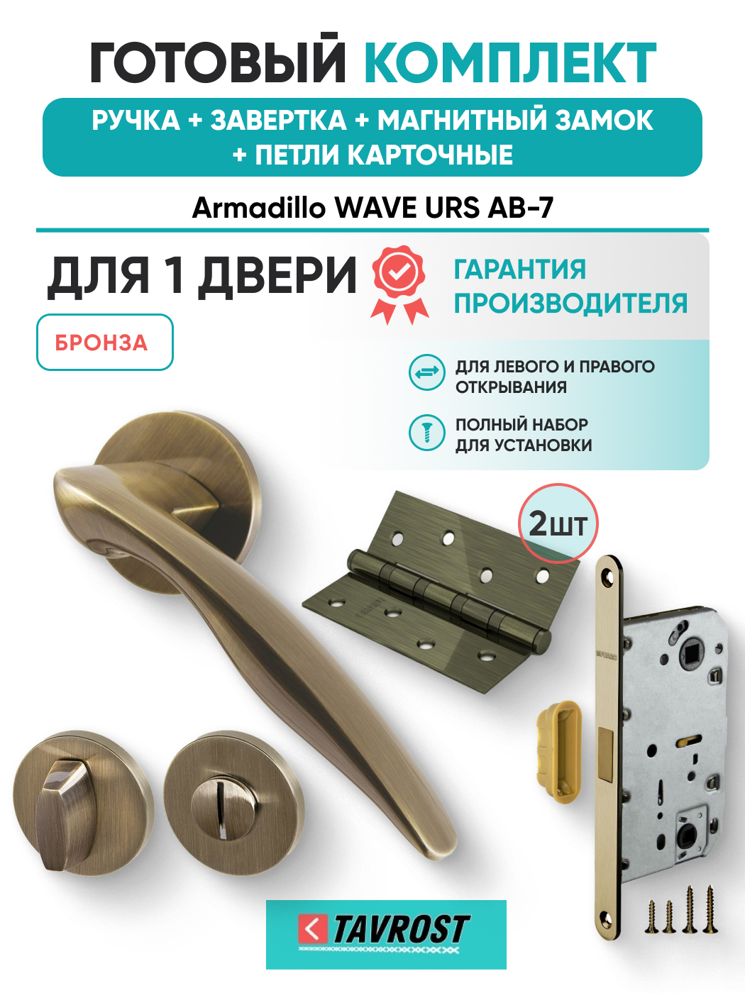 Комплект: Ручки Armadillo WAVE URS AB-7+Завертка+Магнитный замок и Петли Fuaro/бронза