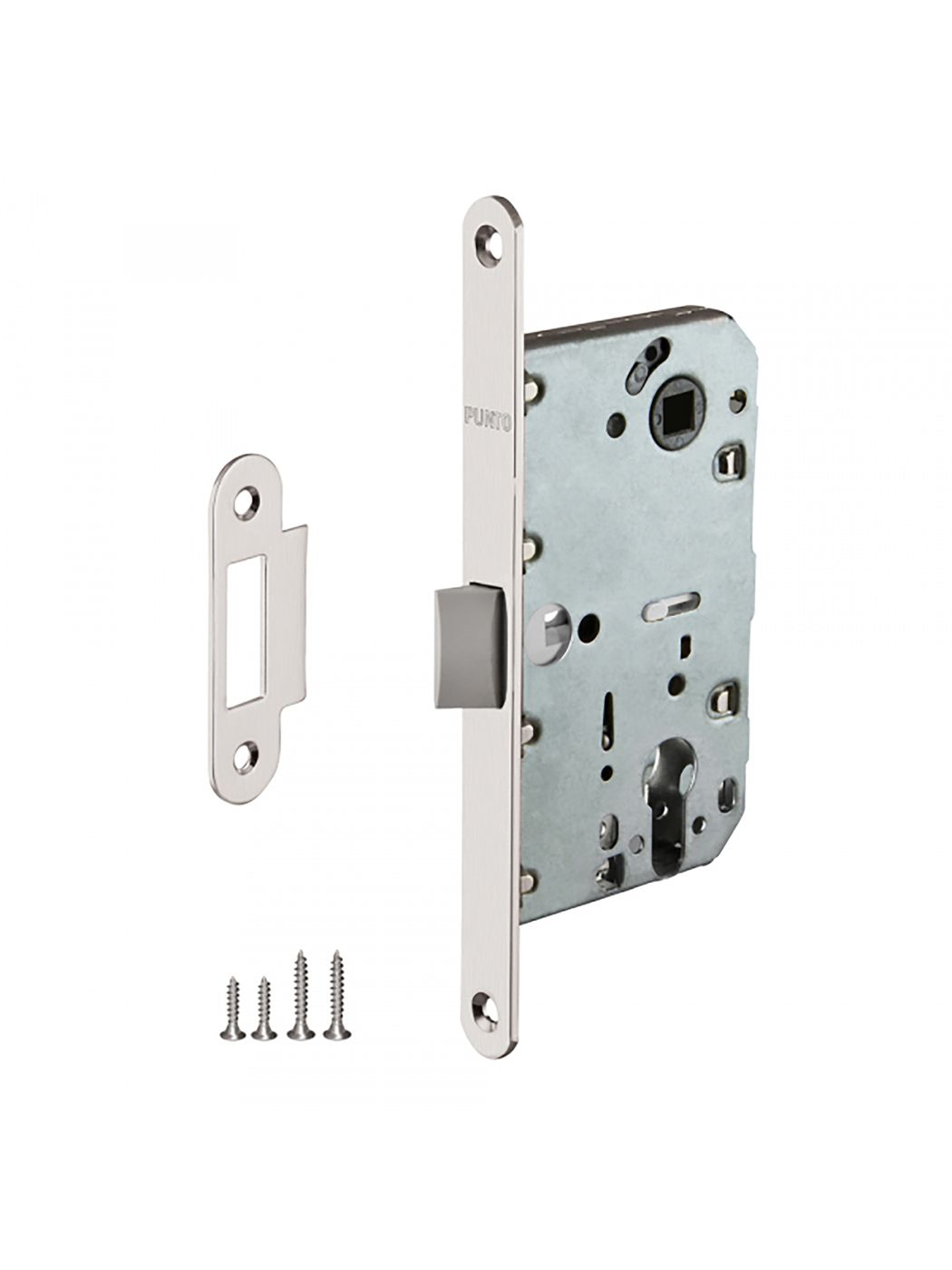 Корпуса замков Punto c пластиковым механизмом предназначены для установки в деревянные межкомнатные двери, подходят для дверей левого и правого открывания. Корпуса замков прошли испытания и имеют высший 4 класс надежности (250 000 циклов открывания/закрывания), что позволяет рекомендовать их для установки на двери помещений с большой проходимостью. Упаковка : блистер.Характеристики