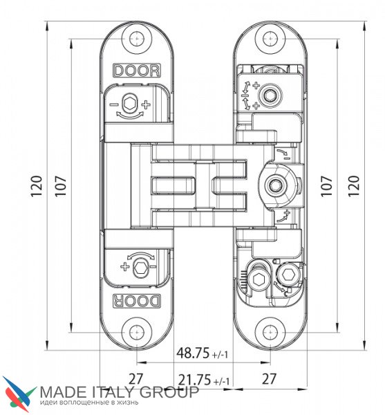Kubica 2700 DXSX, NO петля скрытая универсальная центральная ЧЕРНЫЙ (60 kg)