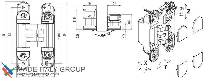 Kubica 2760 DXSX, OL петля скрытая универсальная ЗОЛОТО (60 kg)