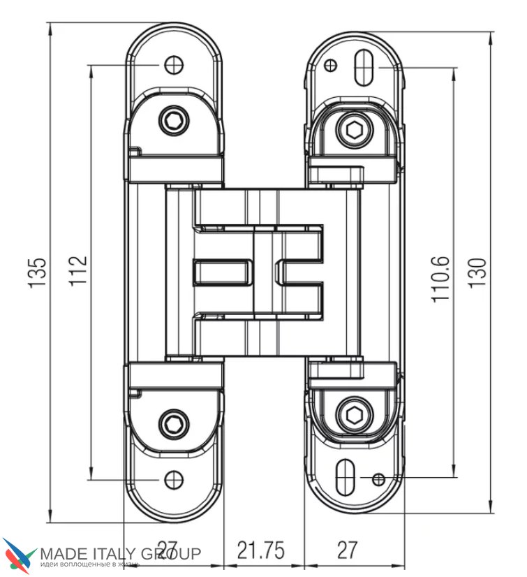 Kubica 2760 DXSX, OS петля скрытая универсальная МАТОВОЕ ЗОЛОТО (60 kg)
