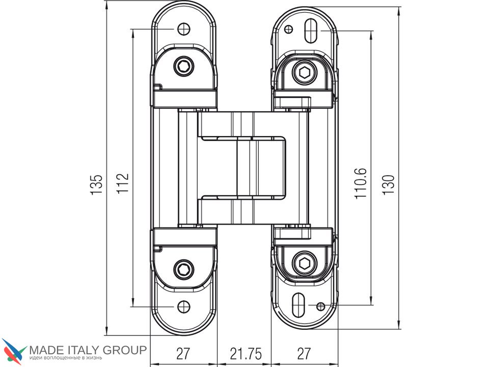 Kubica 2780 DXSX, BI петля скрытая универсальная БЕЛЫЙ (80 kg)