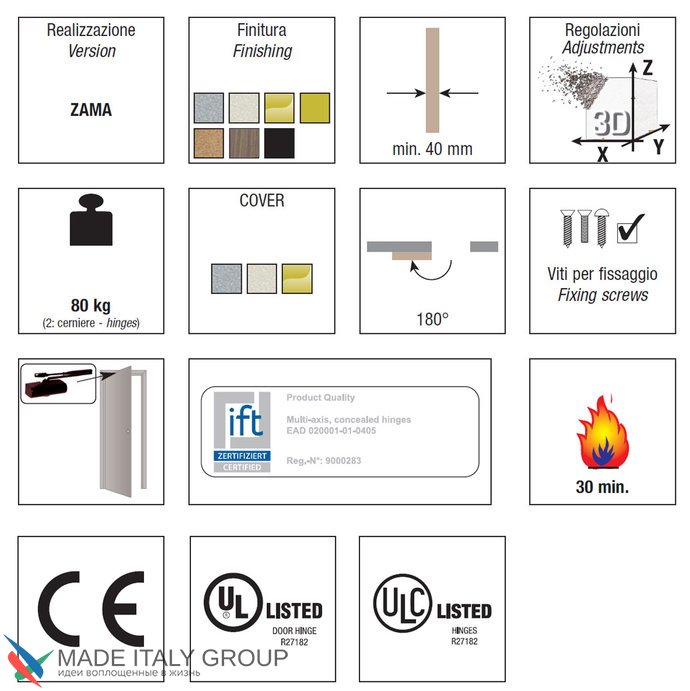 Kubica 5080 DXSX, BR петля скрытая универсальная БРОНЗА (80 kg)