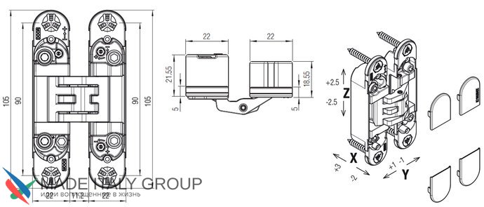 Kubica 6400 DXSX, IBU петля скрытая универсальная самоцентрующаяся БРОНЗА (45 kg)