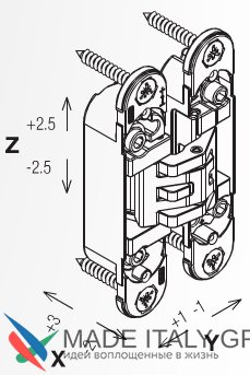 Kubica 6400 DXSX, OS петля скрытая универсальная самоцентрующаяся МАТОВОЕ ЗОЛОТО (45 kg)