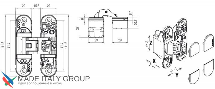 Kubica 6700 DXSX, CL петля скрытая универсальная ПОЛИРОВАННЫЙ ХРОМ (70 kg)