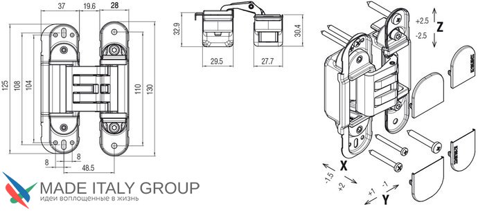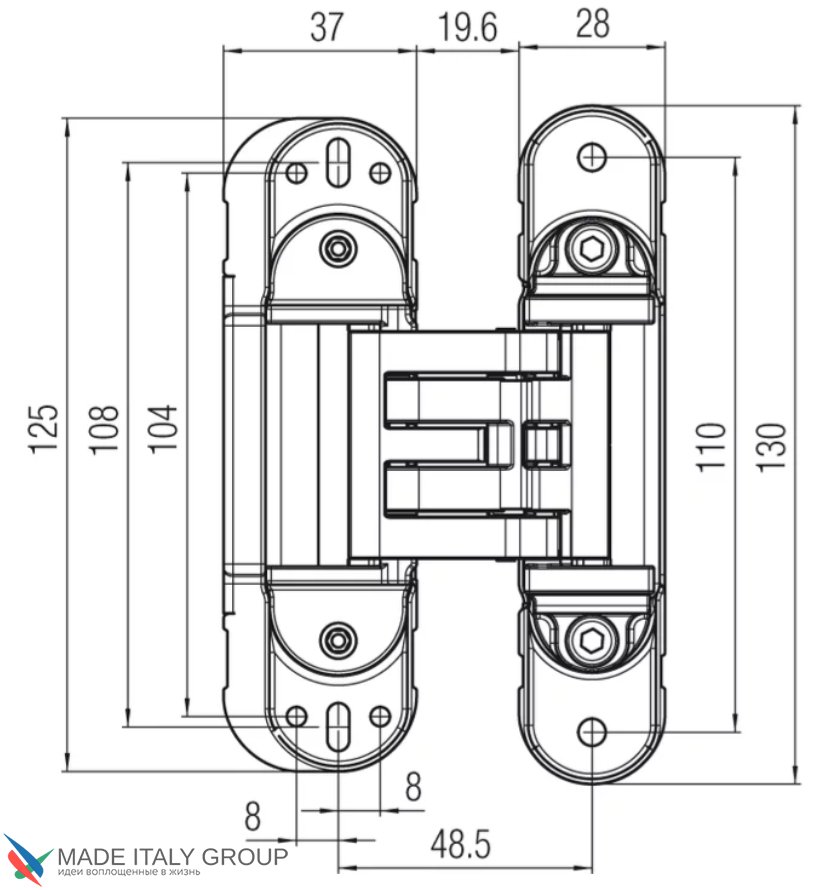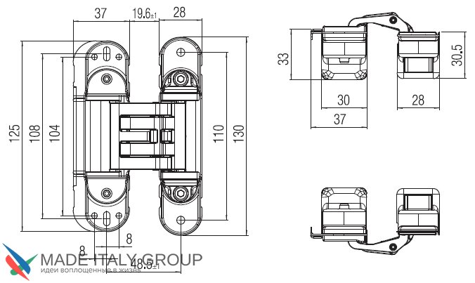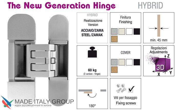 Kubica HYBRID 6360 45 CR.SAT петля скрытая универсальная асимметричная, цвет МАТОВЫЙ ХРОМ (60 kg)
