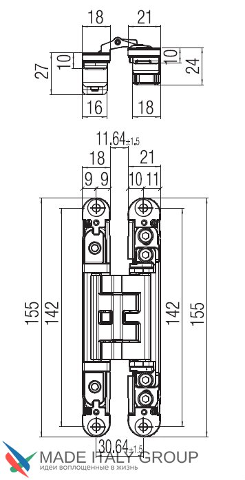 Kubica HYBRID K2460 NO петля скрытая универсальная асимметричная, цвет ЧЕРНЫЙ (60 kg)