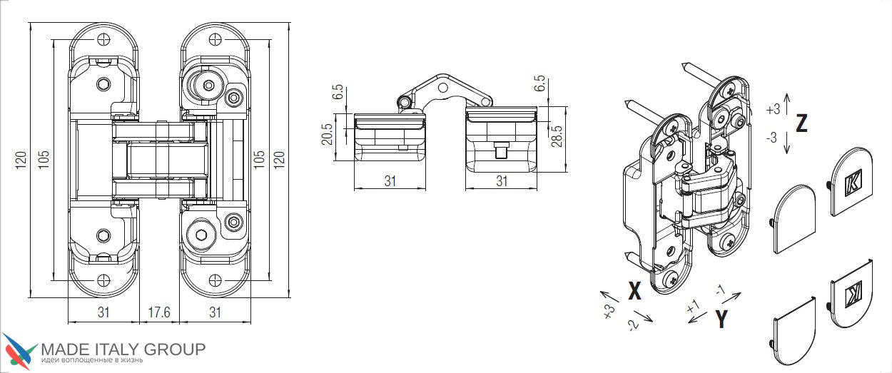 Kubica K8000 ATOMIKA DXSX, CL петля скрытая универсальная ПОЛИРОВАННЫЙ ХРОМ (60 kg)