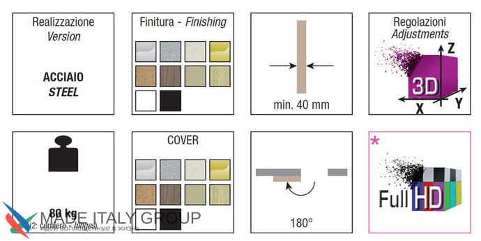 Kubica K8080 ATOMIKA KARAKTER DXSX, CS петля скрытая универсальная МАТОВЫЙ ХРОМ (100 kg)