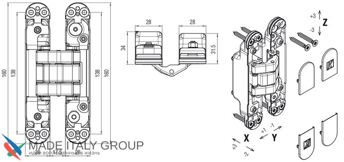 Kubica K8120 ATOMIKA KARAKTER DXSX, CS петля скрытая универсальная МАТОВЫЙ ХРОМ (120 kg)