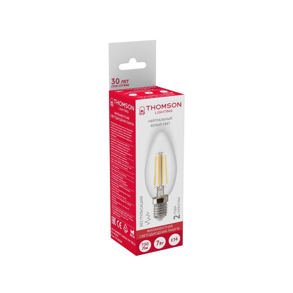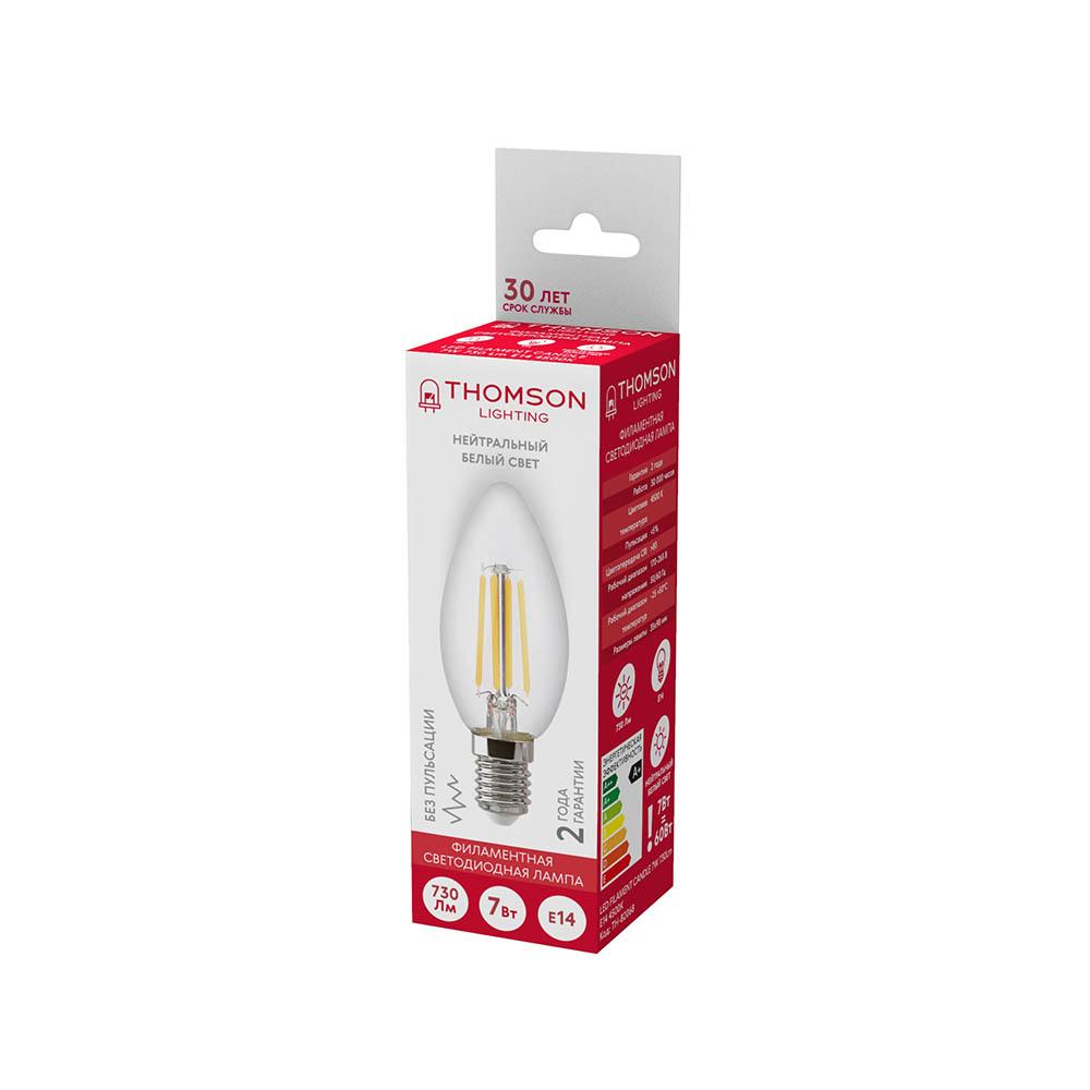 -----Лампа светодиодная филаментная Thomson E14 7W 4500K свеча прозрачная TH-B2068