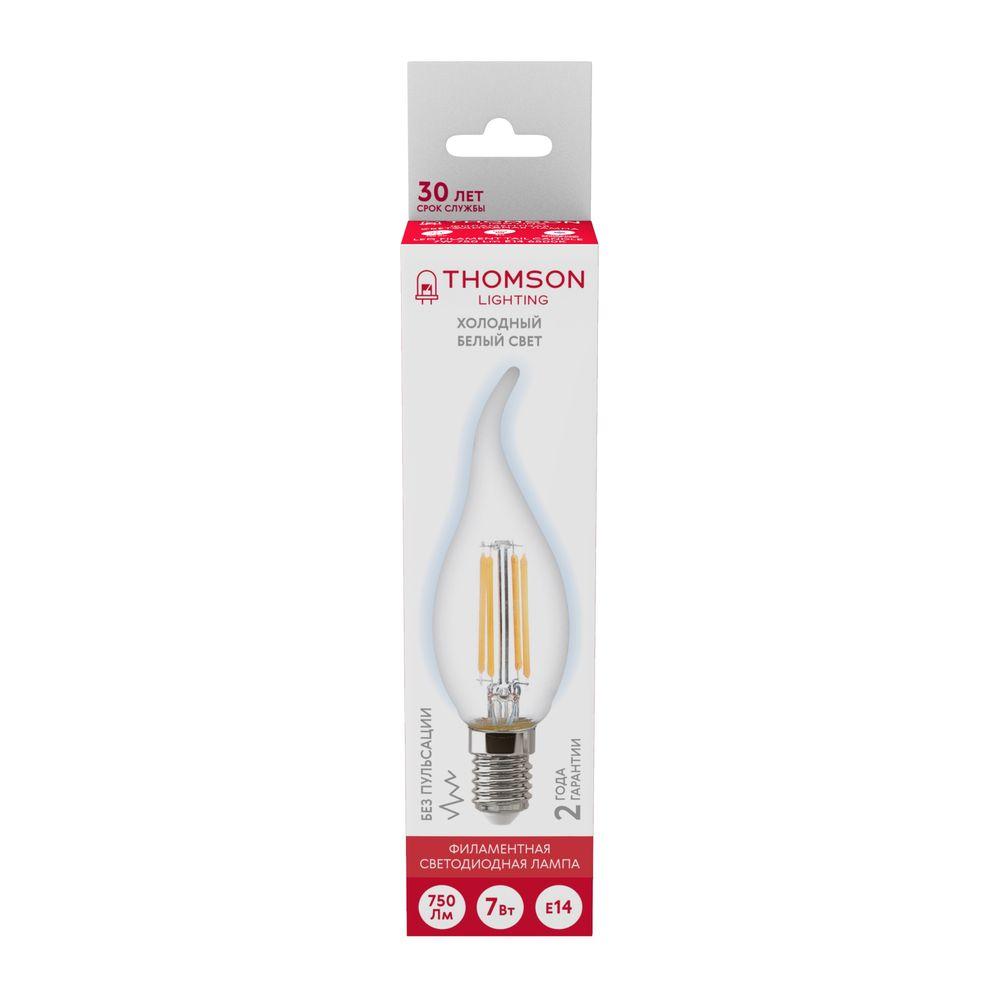 Лампа светодиодная филаментная Thomson E14 7W 6500K свеча на ветру прозрачная TH-B2336