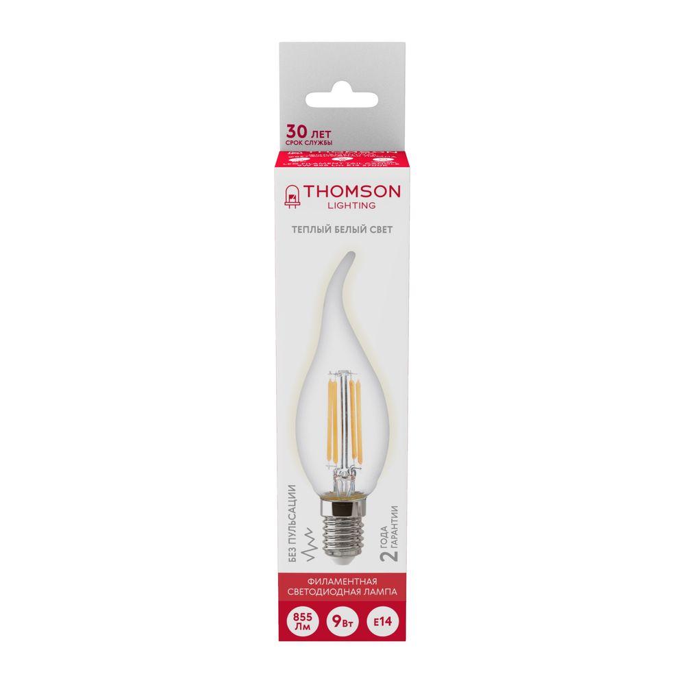 -----Лампа светодиодная филаментная Thomson E14 9W 2700K свеча на ветру прозрачная TH-B2077