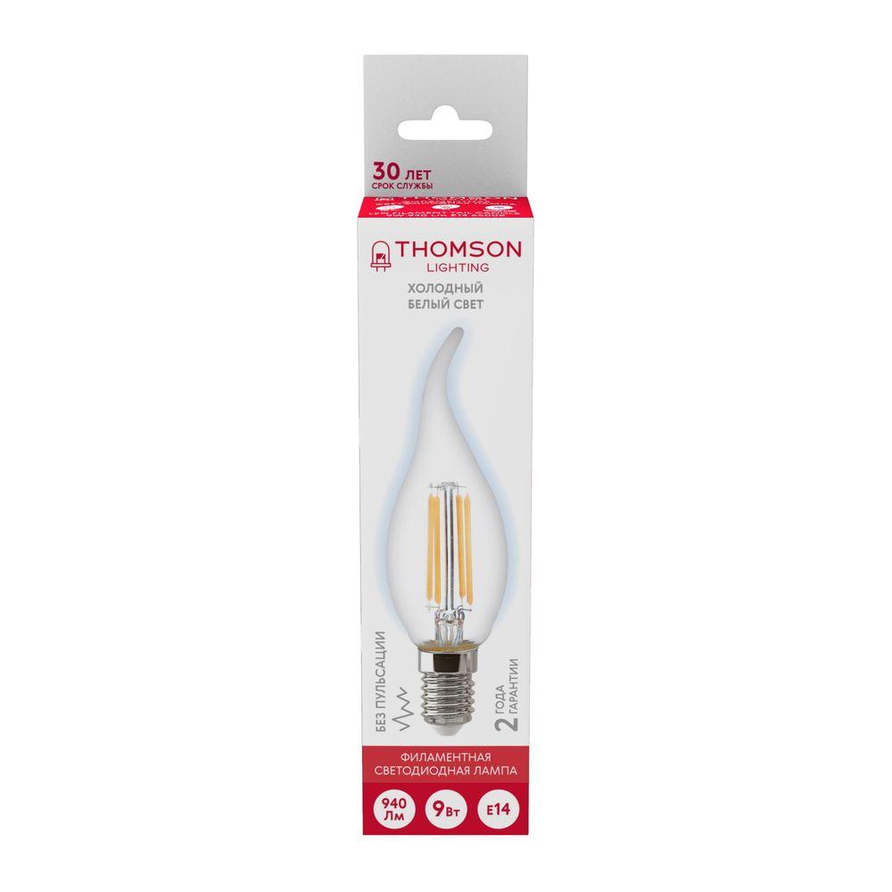 -----Лампа светодиодная филаментная Thomson E14 9W 6500K свеча на ветру прозрачная TH-B2387