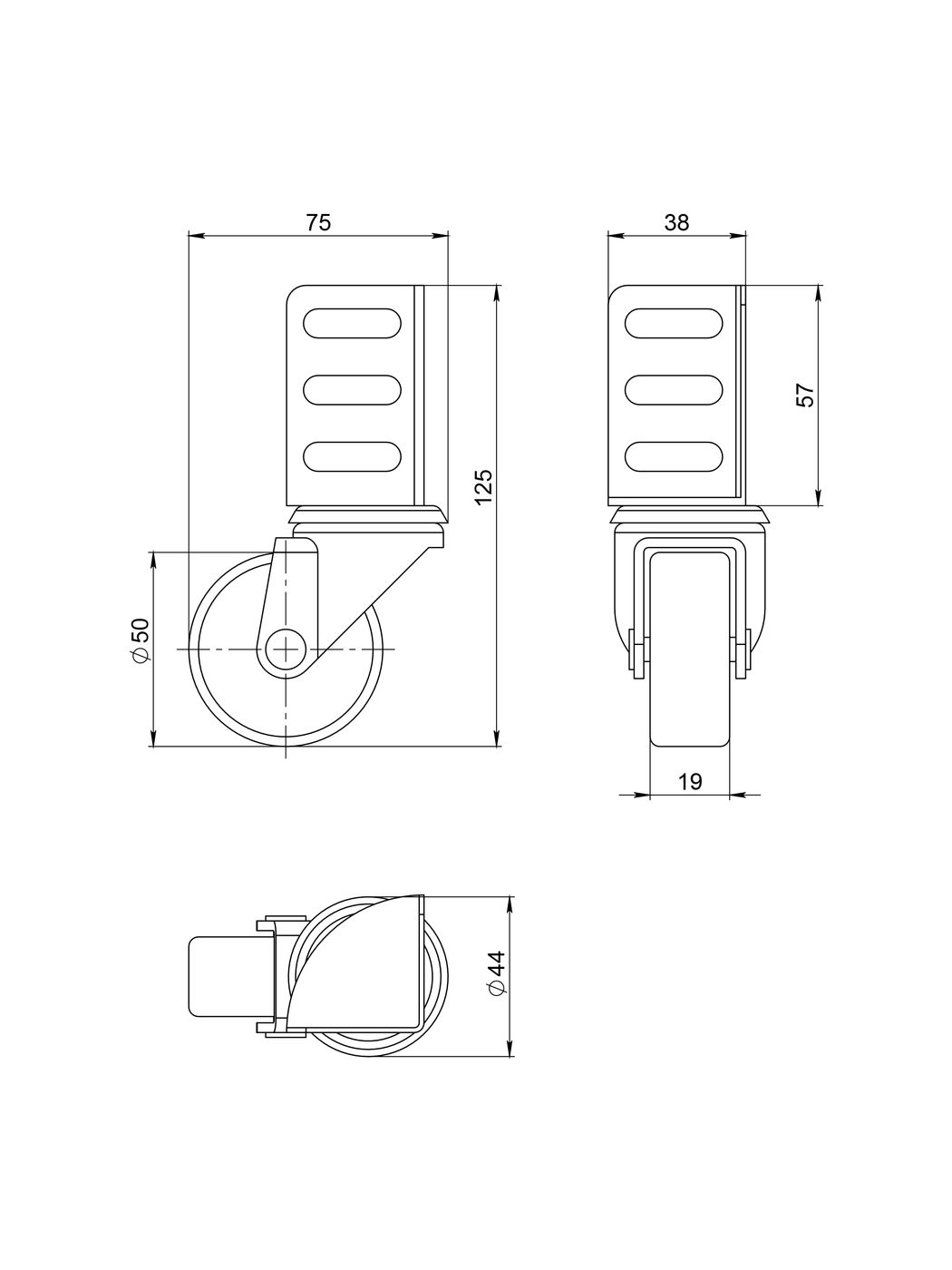 Опора Ajax (Аякс) колесная WL/B-50R/40kg резина, под винт М8