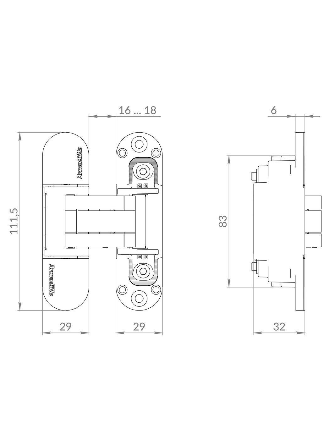 Петля Armadillo (Армадилло) скрытой установки U3D6002.TG SC мат. хром