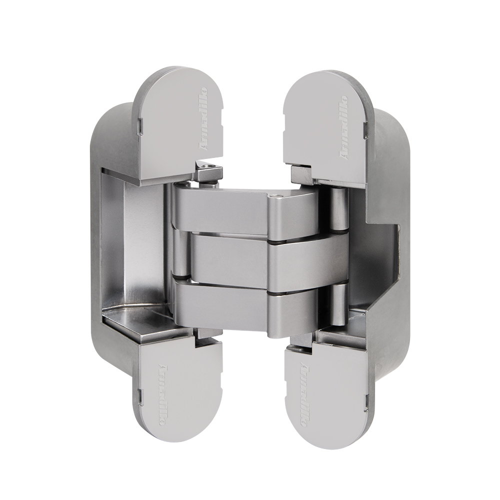 Универсальные петли Armadillo UNIVERSAL 3D-ACH из коллекции URBAN - эксклюзивная разработка компании. Подходят для компланарных дверей и дверей с алюминиевой кромкой с левым и правым открыванием.Невидимы на закрытой двери и обеспечивают угол открывания до 180 градусов. Бесшумны и плавны в работе за счёт нейлоновых вставок на подвижной части конструкции. Легко регулируются в трех плоскостях уже после завершения монтажа.Петля скрытой установки с 3D-регулировкой UNIVERSAL U3D8000 имеет ряд дополнительных преимуществ: Увеличенная весовая нагрузка и межосевое расстояние, равномерная нагрузка и регулировка в корпусе петли, что исключает возможность провисания дверного полотна. Предназначена для скрытой установки в межкомнатные двери толщиной от 40 мм до 60 мм. Рассчитана на нагрузку до 60 кг при установке двух петель.Декоративные накладки входят в комплект.Петли UNIVERSAL U3D8000 Armadillo идеально сочетаются с фурнитурой Armadillo в аналогичных цветах.Характеристики