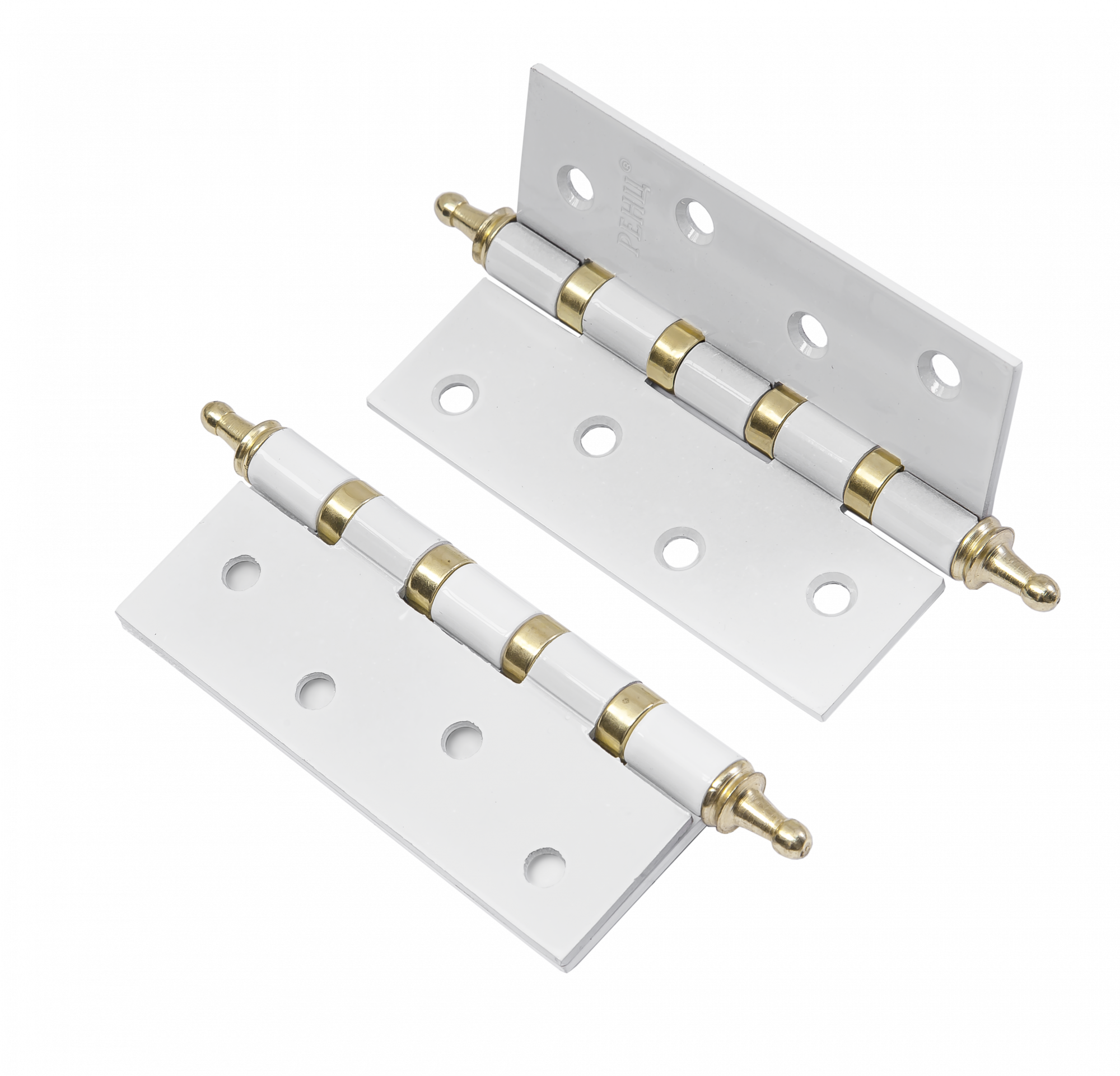 Петля стальная RENZ IN100-4BB CH W/PB 100*75*2,5, 4 подшипника, с колп., белый/латунь блестящая