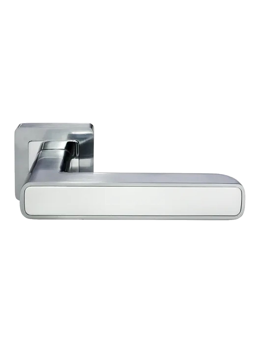 Ручка дверная Morelli FLEX MH-44 SC/W-S55 раздельная на квадратной розетке, цвет матовый хром/белый, ЦАМ Light